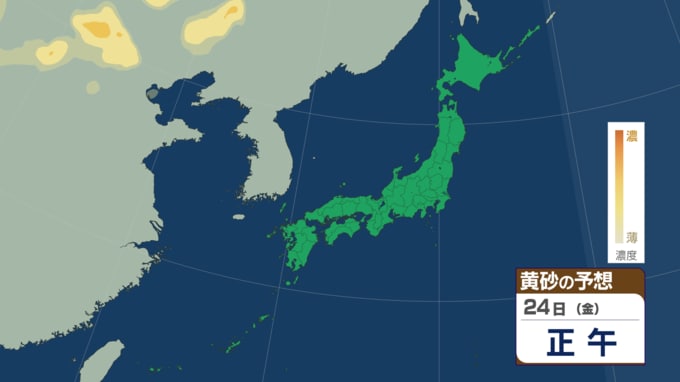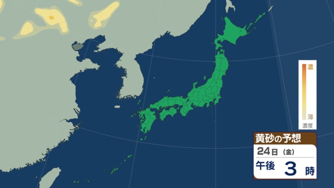 【黄砂・雨情報】黄砂のあとは雨が降る? 23日にかけてほぼ全国に黄砂飛来の可能性 高濃度の黄砂飛来が予想される所も その後は西日本~東日本で雨か【黄砂・雨の最新予想シミュレーションあり】 青森テレビ 2026年4月21日(火) 14:30 国内 【4月24日(金)午後】黄砂の予想シミュレーション ♦黄砂の予想シミュレーション (4月21日・22日・23日・24日) ♦雨・風の予想シミュレーション ♦記事を最初から読む ※「NEWS DIG」のアプリやサイト以外でご覧の方は、関連リンクから画像をご確認いただけます。