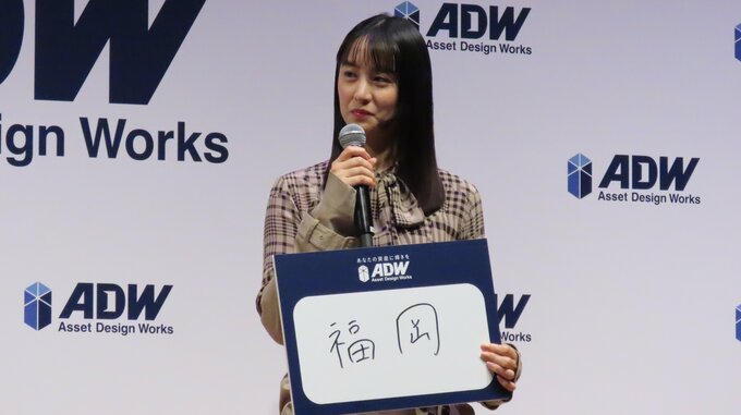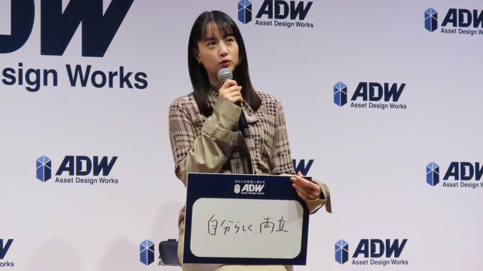 俳優の山本美月さんが、「ADワークスグループ リブランディングおよび新CM発表会」に登壇しました。
