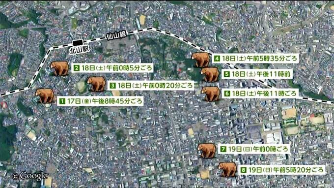 クマは同一の個体とみられ、そこからJR仙山線の南側の区域を移動していたようです。では、このクマはどこからやってきたのでしょうか?