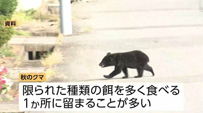 冬眠に備える秋のクマは、限られた種類の餌を多く食べるのが特徴で、餌が枯渇している場合を除き1か所に留まることが多いと言います。
