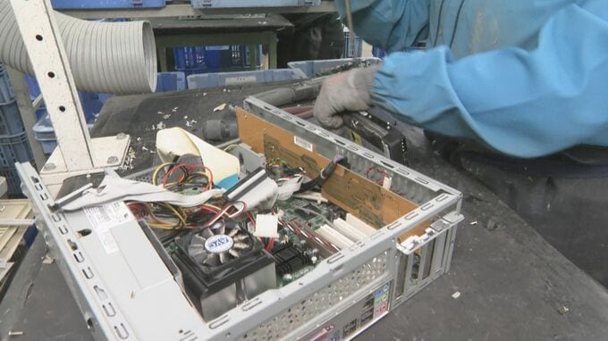 目当ては、電子部品に含まれる金やパラジウムなどの「レアメタル」。このたくさんの箱は出した側にはごみですが、会社にとっては「宝の山」です。