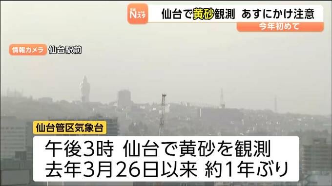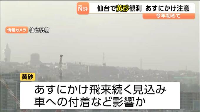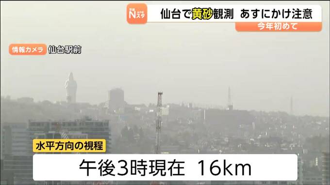 仙台管区気象台は、先ほど、仙台で黄砂を観測しました。黄砂の飛来はあすにかけて続く見込みです。