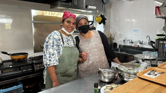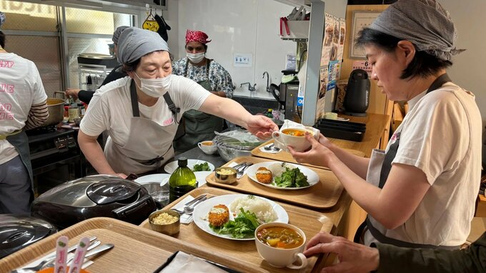「ぷらっとkiricafe」ではカフェメニューの他、日替わりでランチがあり、月曜日はカレーなどスパイスを効かせたメニューです。主にシニア世代のボランティアスタッフが、近くに住むフィリピン出身の川口グロリアさん、インド出身で霧が丘に暮らすラミヤ・ラジャセカンさんと一緒に作っています。