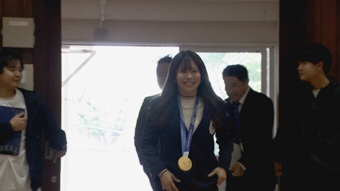 ミラノ・コルティナオリンピックの金メダリスト 深田茉莉選手(19)が、母校に凱旋しました。