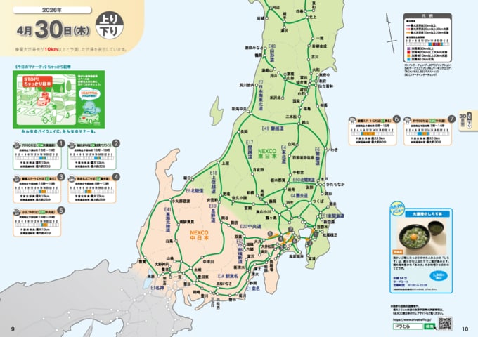 【ゴールデンウィーク2026・高速道路の渋滞予測】いつ・どこで混雑する? 20km以上の渋滞見込みの区間・時間帯・ピーク・通過の所要時間の目安あり 東北道・関越道・京葉道路・常盤道【NEXCO東日本版一覧】 青森テレビ 2026年4月24日(金) 23:15 国内 【4/30(木)】日別の渋滞発生予測ポイントマップ 画像提供:NEXCO東日本 ♦日別の渋滞発生予測ポイントマップ ★4月【25日(土)】【26日(日)】【27日(月)】【28日(火)】【29日(水)】【30日(木)】 ★5月【1日(金)】【2日(土)】【3日(日)】【4日(月)】【5日(火)】【6日(水)】
