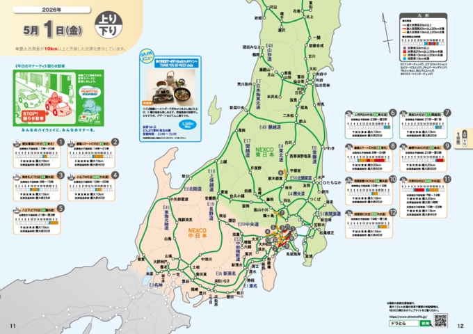 【ゴールデンウィーク2026・高速道路の渋滞予測】いつ・どこで混雑する? 20km以上の渋滞見込みの区間・時間帯・ピーク・通過の所要時間の目安あり 東北道・関越道・京葉道路・常盤道【NEXCO東日本版一覧】 青森テレビ 2026年4月24日(金) 23:15 国内 【5/1(金)】日別の渋滞発生予測ポイントマップ 画像提供:NEXCO東日本 ♦日別の渋滞発生予測ポイントマップ ★4月【25日(土)】【26日(日)】【27日(月)】【28日(火)】【29日(水)】【30日(木)】 ★5月【1日(金)】【2日(土)】【3日(日)】【4日(月)】【5日(火)】【6日(水)】