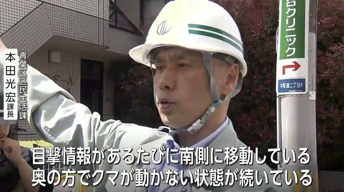 「目撃情報があるたびに南側に移動している。奥の方でクマが動かない状態が続いている」