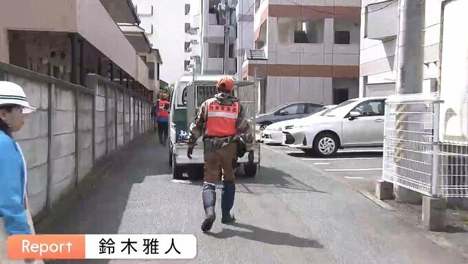 周辺には規制線が張られ、午前10時頃にはクマを捕獲するための箱わなが設置されました。