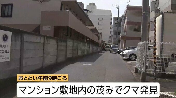 茂みの中でクマが見つかったのは、おととい午前9時ごろ。マンション周辺は、警察官らが集まり、ものものしい雰囲気に包まれました。