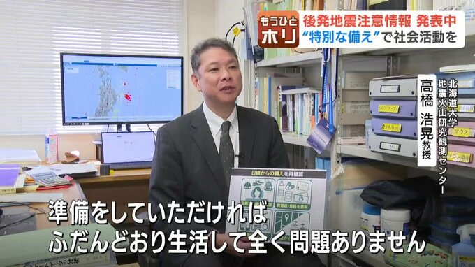 そういった時、観光地でも起こるっていう可能性は十分にこれありますからね。今回の地震のメカニズムに詳しい北海道大学大学院の高橋浩晃教授に発表中の私たちが取るべき行動や備えのポイントを聞きました。