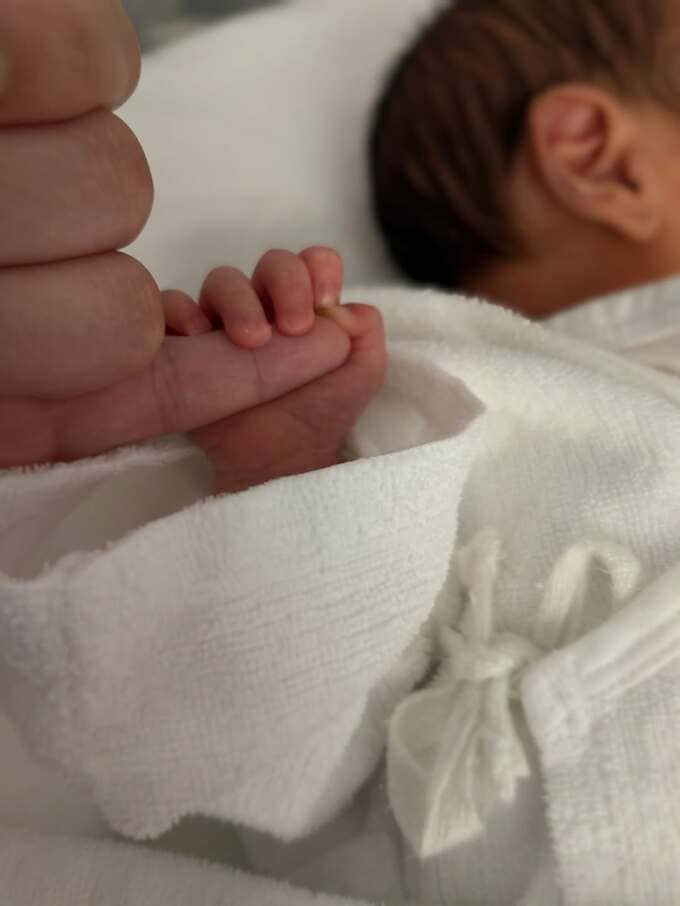 才木さんは「先日、第一子を出産いたしました。おかげさまで母子ともに健康です」と報告。産着を着た赤ちゃんの小さな手が、才木さんの小指をぎゅっと力強く握りしめる、幸せいっぱいの写真を投稿しました。