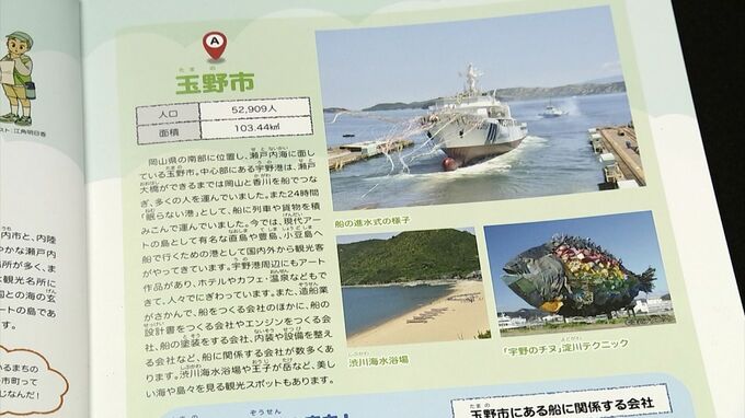 地元の企業について子どもたちに知ってもらうための教材本を、広告事業などを手掛ける岡山市のビザビが玉野市教育委員会に贈りました。贈られたのは「発見!たんけん!小学生のためのお仕事ノート」です。シリーズ…