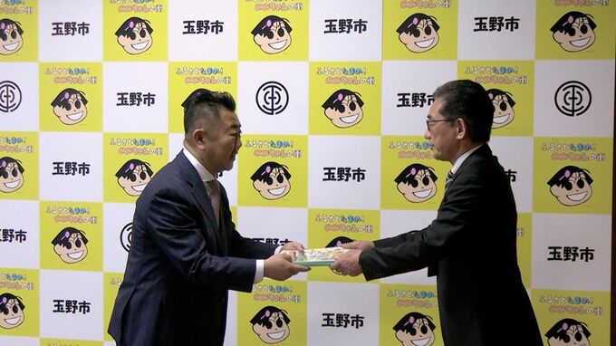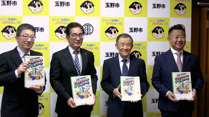 シリーズ第4弾となる今回は「玉野・東備エリア版」で、贈呈式でビザビから玉野市教育委員会の多田一也教育長に手渡されました。