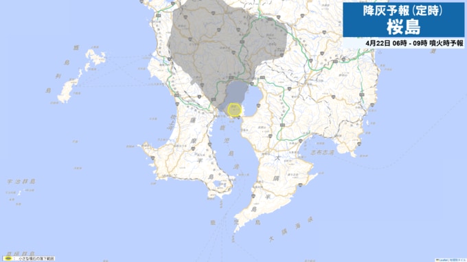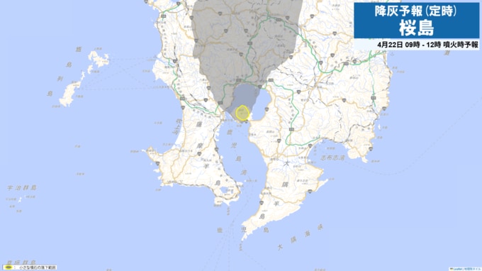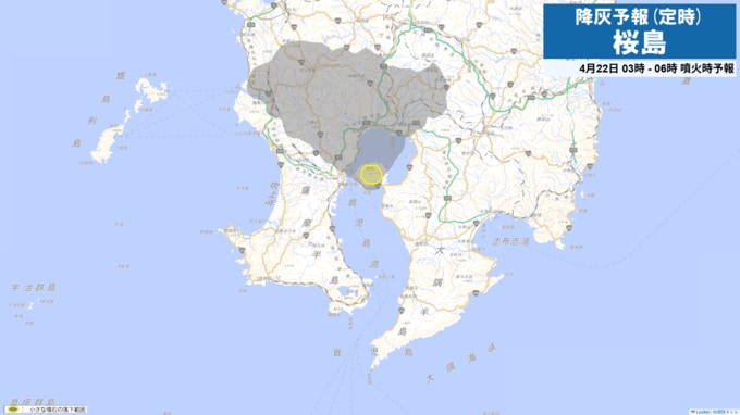 桜島降灰予報(定時)灰が予想されるエリアと時間帯を確認