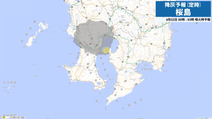 ▼22日03時から06時まで 北西(鹿児島市吉野方向) 50km 3km