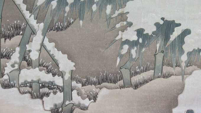 「エキセントリックな絵描きといわれるんですけれどもうそろそろそれが出ていてこのジグザグにこんなことあり得ないですよジグサグに入り組んだ竹を書き出していて。奥の芝見てください。ちょんちょんちょんと芝を書いて上に的確に雪乗せているんですね。これが趣味なんです、好きなんです」