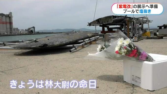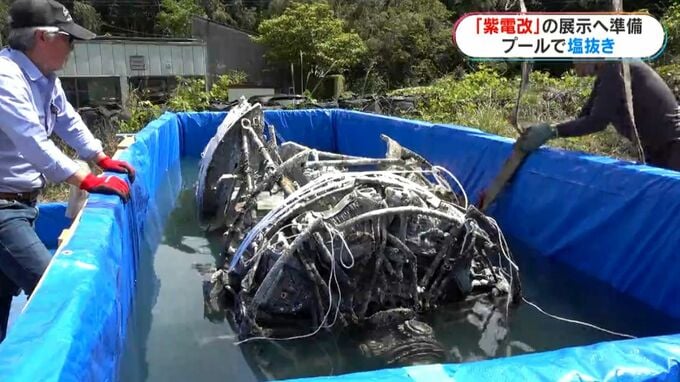戦闘機「紫電改」の胴体がプールへ 搭乗の林大尉の命日に…展示に向けて塩抜き 南日本放送 2026年4月21日(火) 20:08 国内 林大尉の命日に (北薩の戦争遺産を後世に遺す会・吉野弘一さん)「きょうプールに無事に、命日に入ったのがなんともいえない。林さんの功績、墜ちたときの状況をみんなに知ってほしい」 「紫電改」は今後、1年ほどプールに浸され、その後、展示される予定です。