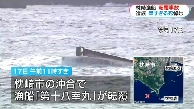 鹿児島海上保安部によりますと、17日午前11時すぎ、枕崎市の立神岩の沖合で漁船「第十八幸丸」が転覆しました。