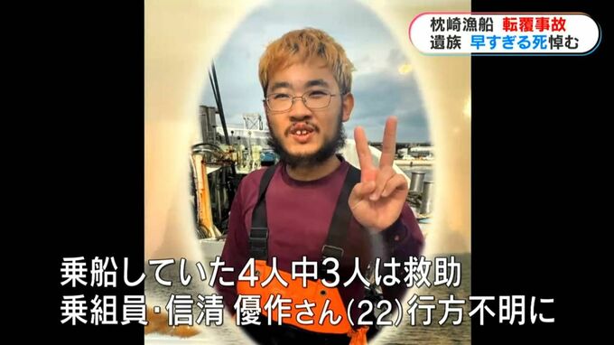乗っていた4人のうち、3人は救助されましたが、信清優作さん(22)が行方不明に。翌日、転覆した船のロープに絡んだ状態で見つかり、その後、死亡が確認されました。