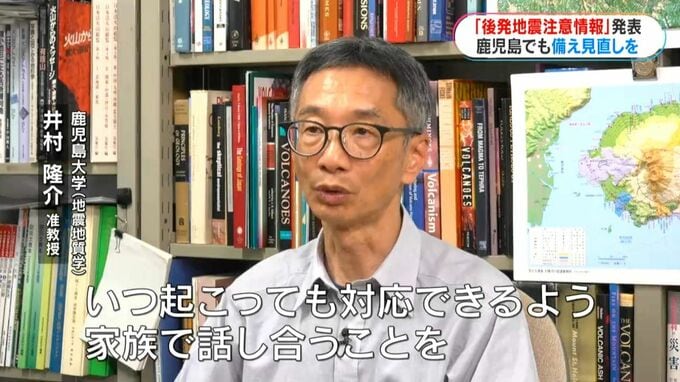 震度5強の地震「北海道・三陸沖後発地震注意情報」発表 専門家「鹿児島でも防災行動を改めて考えるきっかけに」 南日本放送 2026年4月21日(火) 19:58 国内 鹿児島でも今一度防災について考えてほしい (鹿児島大学(地震地質学) 井村隆介准教授)「いつ起こっても対応できるよう、家族で話し合うことを鹿児島でも考えることが大事」 鹿児島大学の井村隆介准教授は今回の地震をうけ、鹿児島でも今一度防災について考えてほしいと話します。
