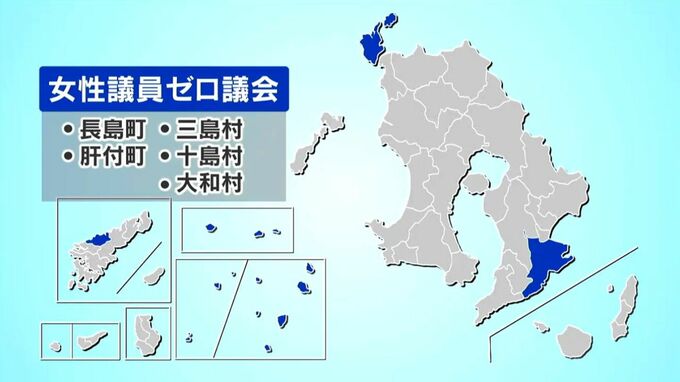 姶良市で鹿児島県内初の女性首長が誕生するなど政治分野で女性の進出が進んでいる一方で、県内には女性議員がいない議会が5つあります。