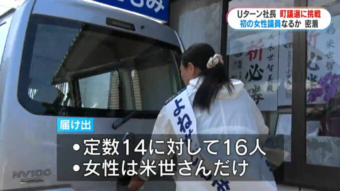 選挙戦初日。届け出たのは定数14に対して16人。女性は米世さんだけでした。