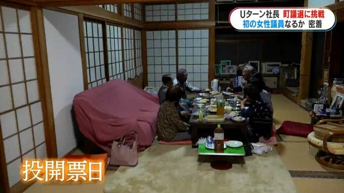 投開票日。当選を一緒に祝おうと、集落の知り合いが集まりました。