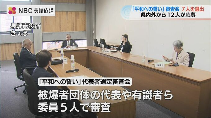 ことしの「平和への誓い」には長崎市と県外から合わせて12人の応募があり、21日の審査会には被爆者団体の代表や有識者ら5人の委員が参加しました。