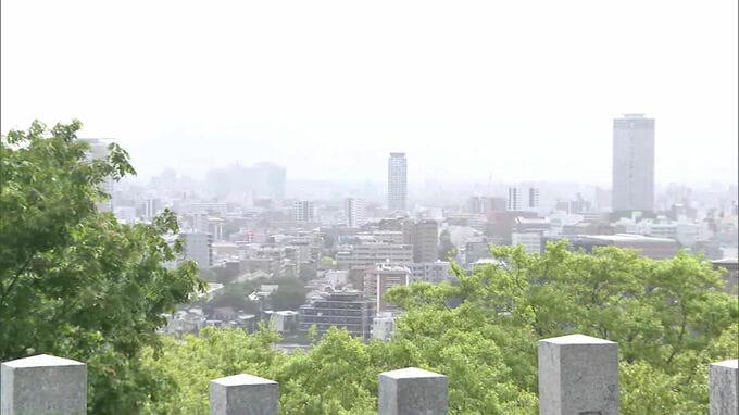 「午前9時すぎの福岡市です。空はやや白っぽく見え遠くの建物がかすんで見えます」