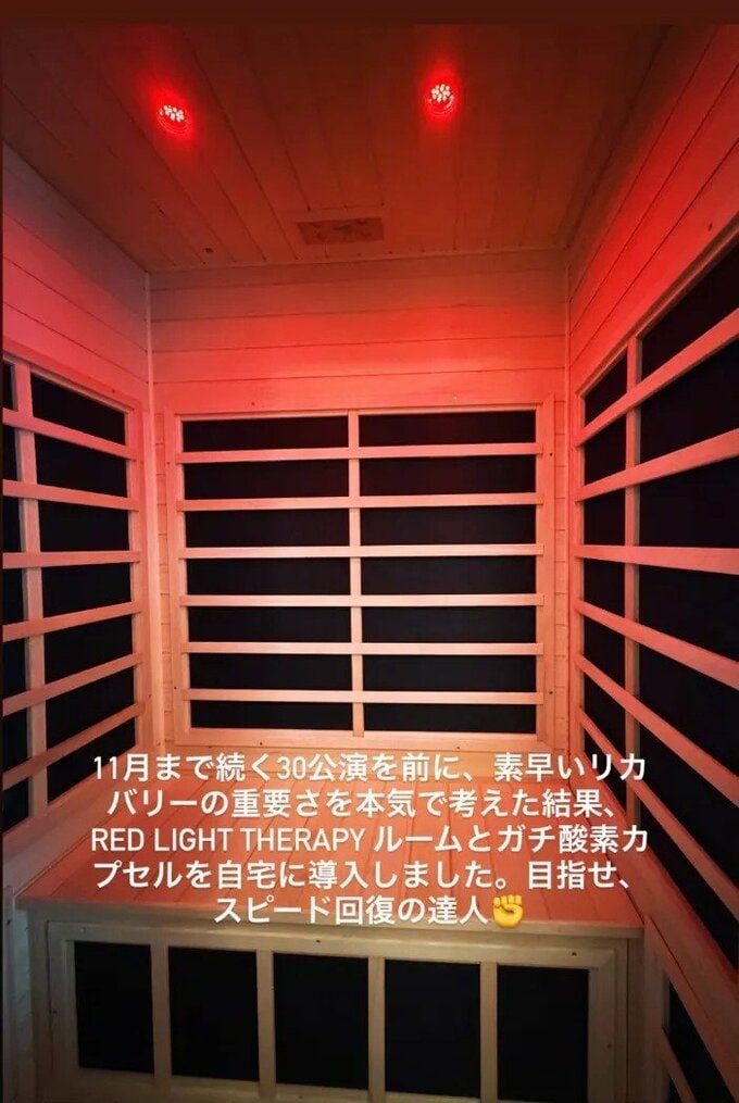 投稿では「11月まで続く30公演を前に、素早いリカバリーの重要さを本気で考えた結果、RED LIGHT THERAPYルームとガチ酸素カプセルを自宅に導入しました。目指せ、スピード回復の達人」と記されており、長期にわたる過酷な公演スケジュールを見据え、徹底したコンディショニングを行っている姿勢が窺えます。