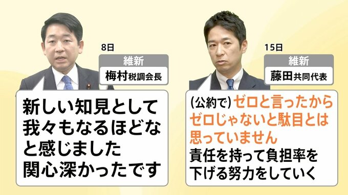 さらに、最近になって維新の藤田共同代表も「(公約で)ゼロと言ったからゼロじゃないと駄目だとは思っていません。責任を持って負担率を下げる努力をしていく」と少しずつ柔軟な姿勢を見せるようになってきています。