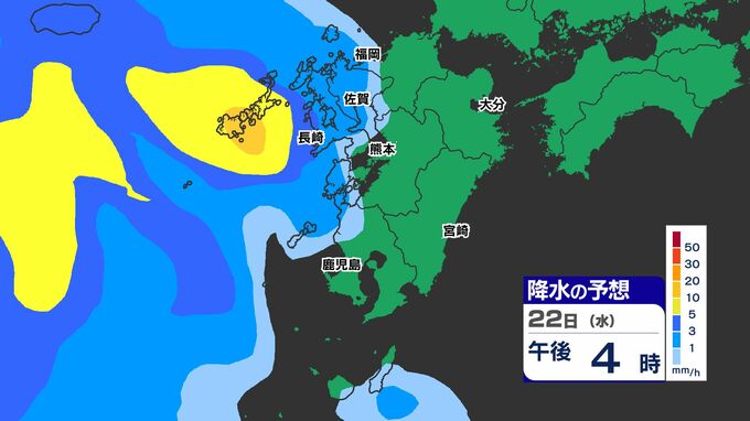 【警報級大雨】低気圧 九州通過 23日(木)「荒れた天気」【雨と風シミュレーション22日(水)23日(木)】福岡・佐賀・長崎・大分・熊本・宮崎・鹿児島 南日本放送 2026年4月21日(火) 20:00 国内 天気 雨シミュレーション22日(水)~23日(木) 22日(水)は下り坂です、夕方から雨なので「傘」を持って出かけましょう。 23日(木)は、夜が明ける前から本降りの雨でしょう。 【予想降水量】長崎・佐賀・熊本・宮崎・鹿児島では100ミリ超も