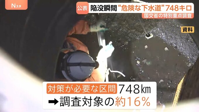 原因は老朽化か 国交省が調査 対策必要な下水道管は748km