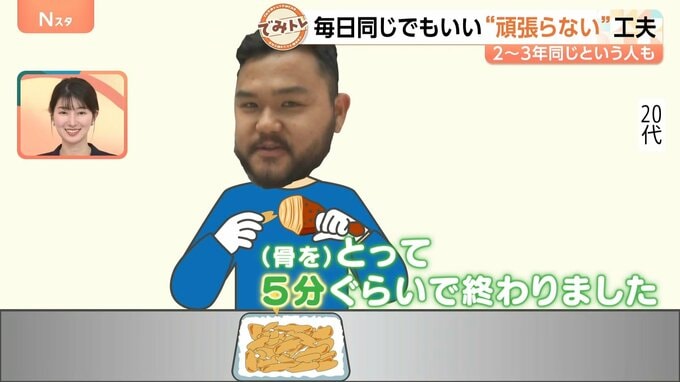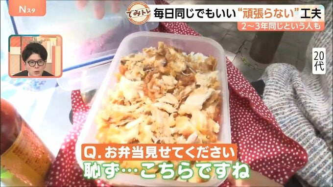 続いて、この方は毎日同じお弁当を作り続けているそうですが、期間はなんと2~3年。