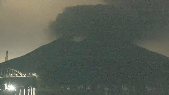 気象台によると、桜島の南岳山頂火口で21日午後10時21分に噴火があり、噴煙が火口から2400mの高さまで上がりました。やや多量の噴煙が直上に上がっています。