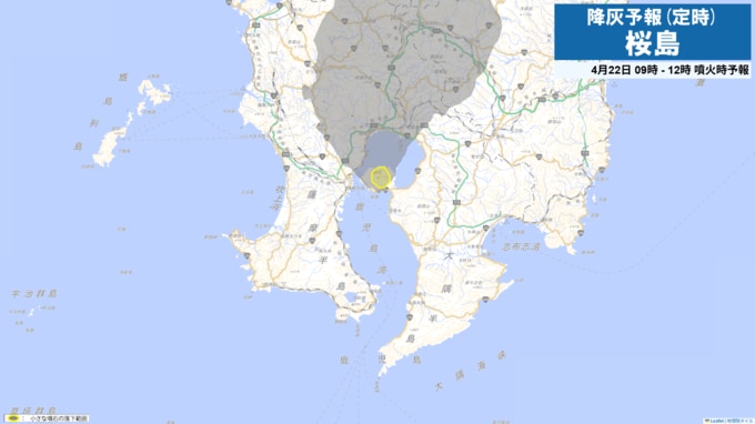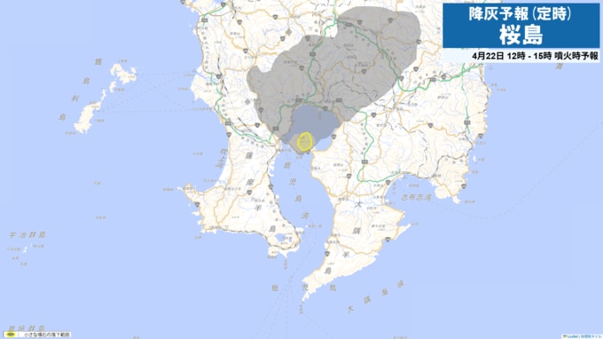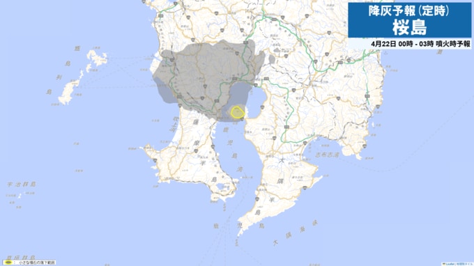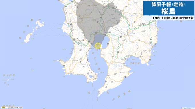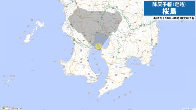 桜島降灰予報(定時)灰が予想されるエリアと時間帯を確認 鹿児島市吉野方向や姶良市方向へ