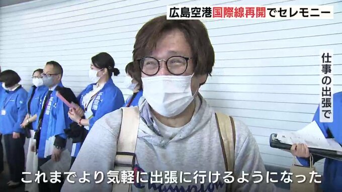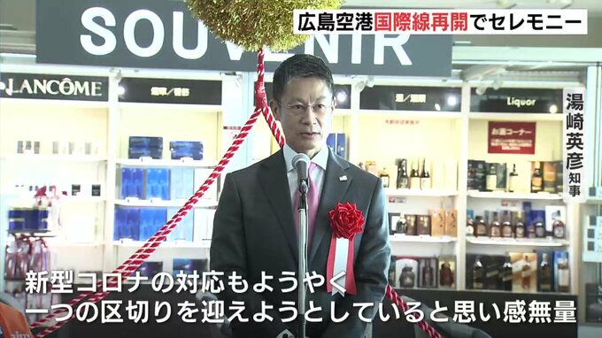 広島空港の国際線が2年9か月ぶりに再開され、記念のセレモニーが開かれました。