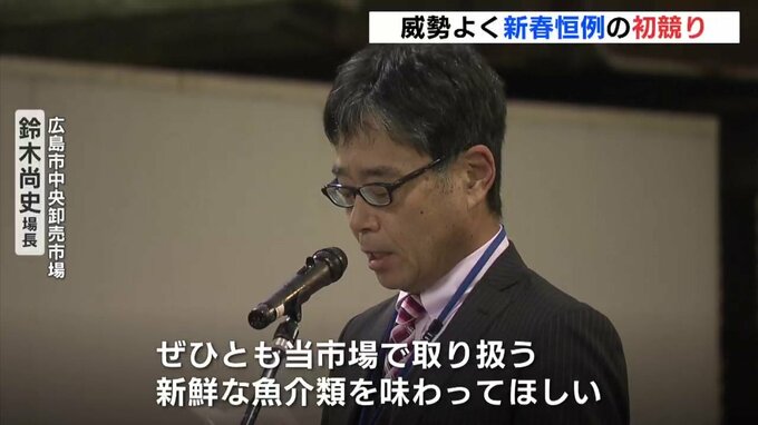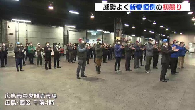 広島市の中央卸売市場では、午前4時から漁業関係者が今年1年の繁盛を願う大発会が開かれました。