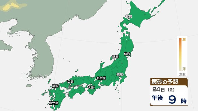 【黄砂情報】「日本列島」の広範囲に黄砂飛来 洗濯物やアレルギーなど影響に注意 22日(水)~25日(土)黄砂シミュレーション【気象庁 22日現在】 RSK山陽放送 2026年4月22日(水) 07:50 国内 天気 24日(金) ▶【画像】22日(水)~25日(土)黄砂シミュレーション ▶【画像】22日(水)~25日(土)黄砂シミュレーション