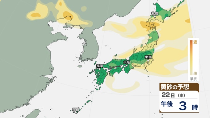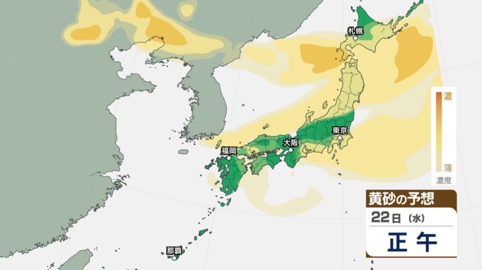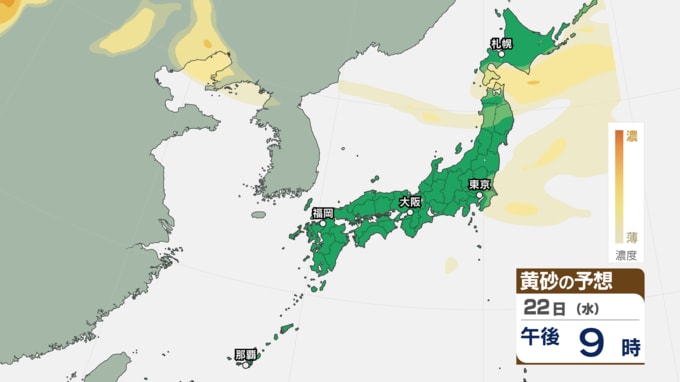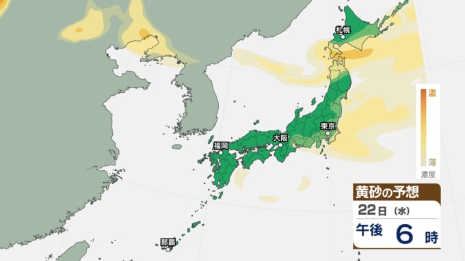 【 黄砂情報 】きょう22日も北日本~西日本の広い範囲に黄砂が飛来 アレルギーや呼吸器系疾患の人は注意を【黄砂のシミュレーション・22日午前9時現在】 新潟放送 2026年4月22日(水) 09:00 国内 天気 22日(水)の黄砂シミュレーション