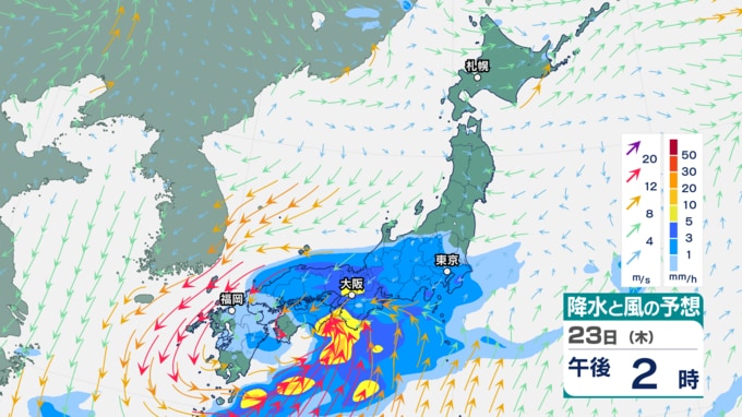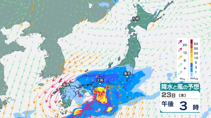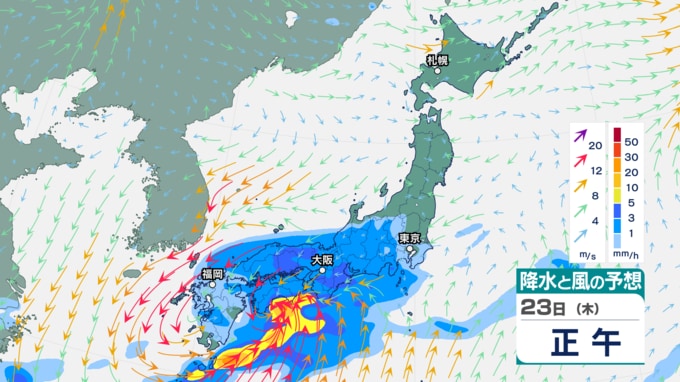 【大雨情報】24日(金)にかけて西日本~東日本で警報級大雨か 一方で黄砂の影響も【気象庁・雨と風のシミュレーション】
