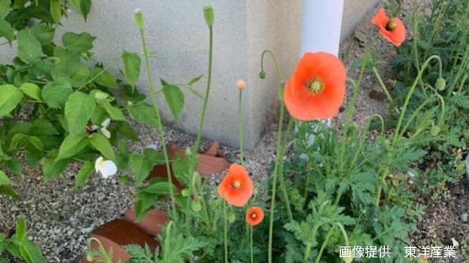 ナガミヒナゲシがよく見られるのは、更地、工事跡、道路脇、お庭の片隅、駐車場、塀際など、どこも人の手が入り、その後少し空いた場所です。