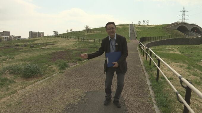 「『春のいわて探訪』ということで、きょう私は、盛岡市本宮にあります盛岡中央公園にやってまりました。こちらの公園いつもわんちゃんの散歩ですとかジョギングをしている方がたくさんいらっしゃるんですけども、今月こちらの敷地にオープンしたものがあります。それがこちら、ジャン!『イシツブテ公園inもりおか』です」
