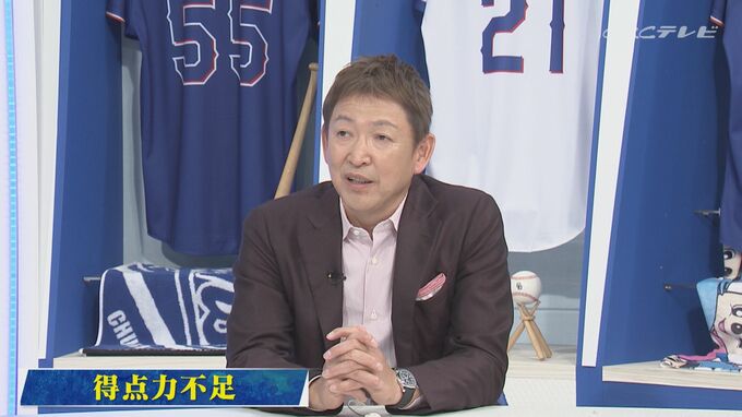 立浪氏「これも一番の問題と思いますし、自分が監督の時もなかなか点がとれなかったんですけども、打たないといけないと言うことですごく力みを感じますよね。結局甘いボールをファールにして追い込まれたくないからボール球に手を出して、三振というケースが多いので、その辺をもう少し意識を変えてもう少しトップを早く作って、ボールを長く呼び込んで見極めることも大事だし、一球で大振りしてはいけないってことですよね」