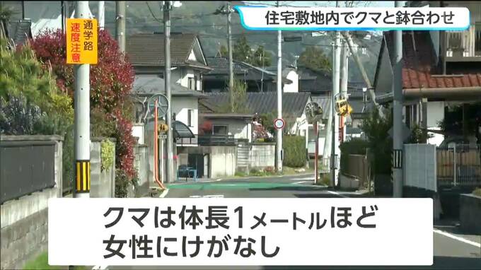 クマは、体長1mほどで、女性にけがはありませんでした。その後、警察がパトカー3台を出して付近を捜索していますが、クマの行方は分かっていません。