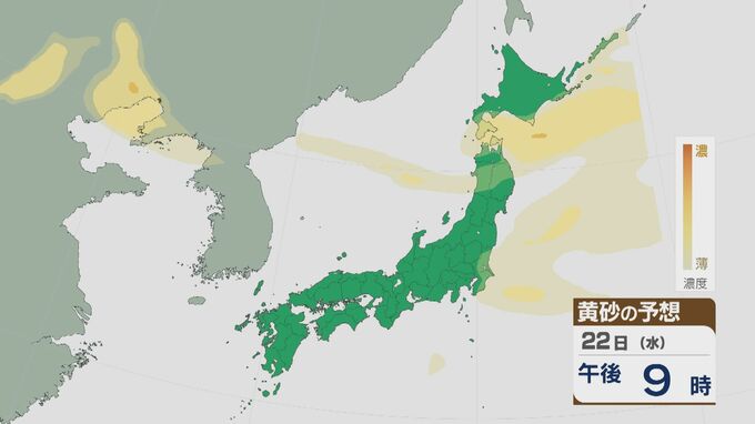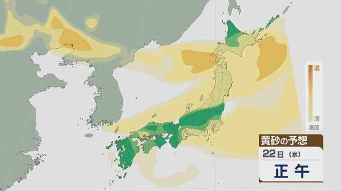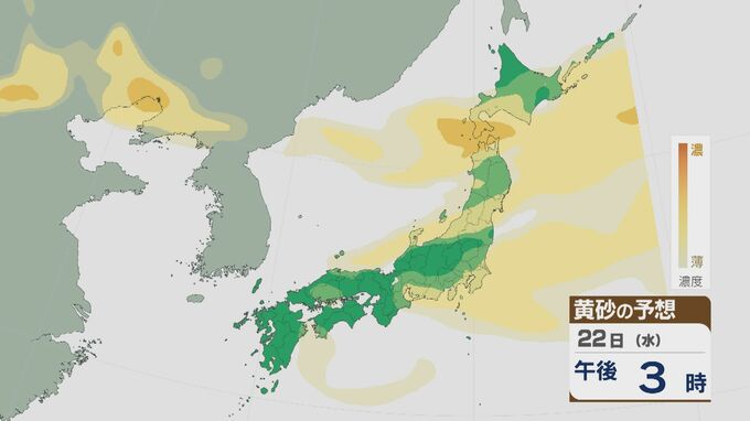 【黄砂情報】黄砂は22日(水)日中までは北陸や東北、北海道などで飛来する見込み 23日(木)は終息へ 飛来予想シミュレーション 北陸放送 2026年4月22日(水) 11:09 国内 大陸からの黄砂は、22日(水)の日中いっぱいは北陸や東北などで飛来する見込みです。 黄砂の予想です。22日の昼過ぎからは北陸や東北、北海道などで黄砂が引き続き飛んできそうです。