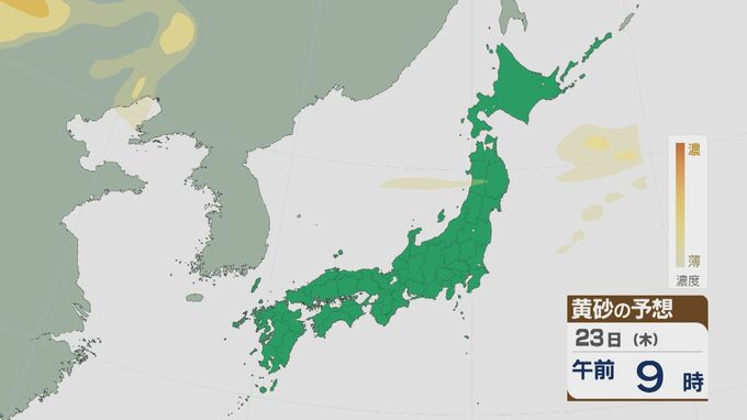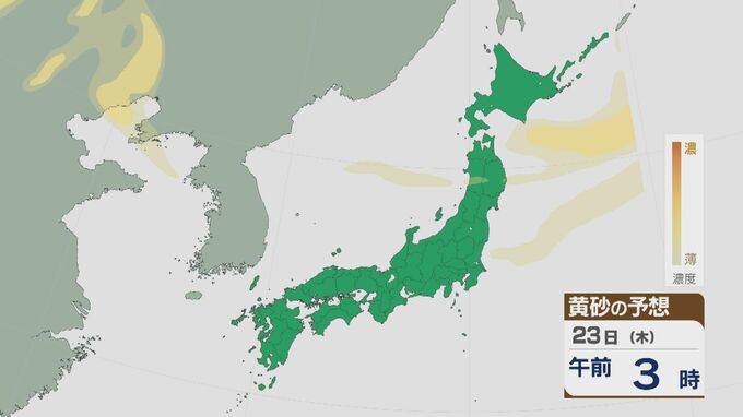 【黄砂情報】黄砂は22日(水)日中までは北陸や東北、北海道などで飛来する見込み 23日(木)は終息へ 飛来予想シミュレーション 北陸放送 2026年4月22日(水) 11:09 国内 23日は、未明から次第に日本列島への黄砂の飛来はおさまりそうです。