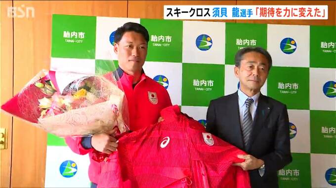 新潟県胎内市出身で、ミラノ・コルティナ五輪 男子スキークロス日本代表の須貝 龍選手(34)が4月21日に胎内市役所を訪れ、地元の応援に感謝を述べました。