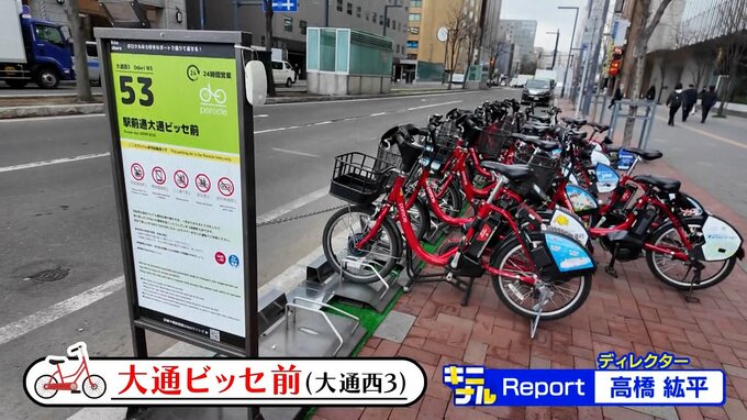 「大通ビッセ前のポロクル置き場ですが、ここにはたくさんのポロクルが止まっています、利用者が多いんでしょうか?」