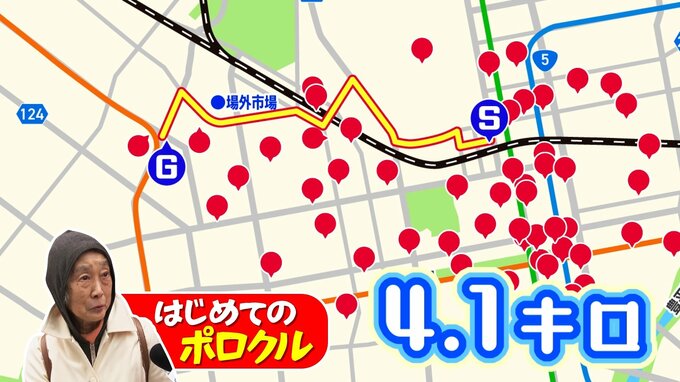 というわけで、睦子さん、はじめてのポロクルに挑戦!ヨドバシカメラ前から二十四軒まで4.1キロのコースです。